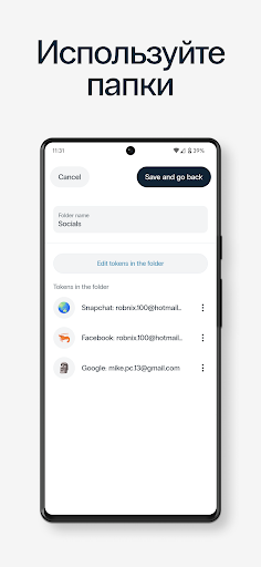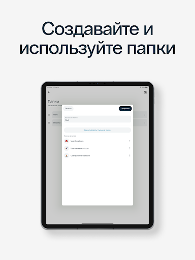 - Удобное распределение OTP токенов по папкам;