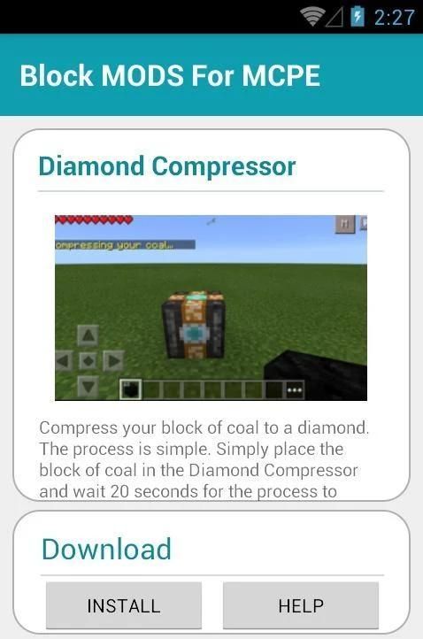 Every mod has title, description , screenshot and download button. Search any mods for mcpe you want just browse favourite mod and press DOWNLOAD ... Done!