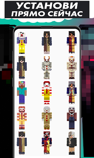 Здесь вы найдёте самые топовые скины, с которыми сможете выделиться среди остальных игроков в режиме онлайн. Мы как и вы фанаты самой популярной игры Майнкрафт и уверены, что вы точно найдете страшный скин, который вам понравится. Возможно это будет скин демона, дьявола или клоуна.