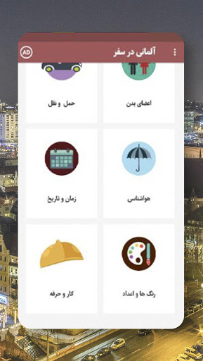 اپلیکیشن " آلمانی در سفر " شامل بیش از ۳۰۰۰ اصطلاح و کلمه روزمره و پرکاربرد آلمانی به همراه ترجمه