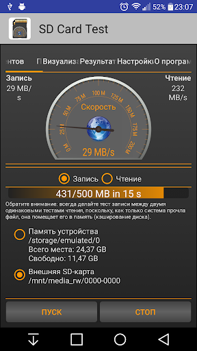 Воспользуйтесь лучшей на сегодняшний день утилитой для тестирования SD-карт. Протестируйте скорость как внутреннего, так и внешнего хранилища Вашего устройства!