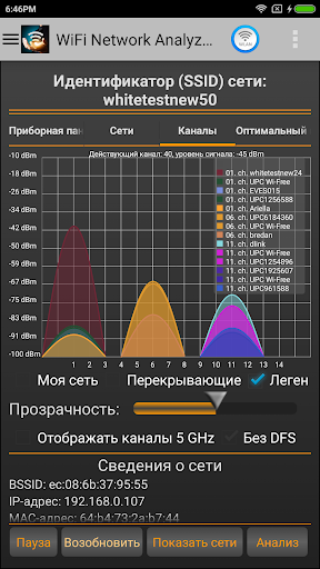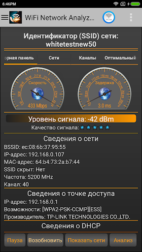 Для профессионалов: приложение не просто выдает статическую информацию, но непрерывно измеряет время ожидания сети WiFi и работоспособность разрешения DNS-имен.