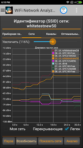 * Информация о беспроводных сетях в форме графика