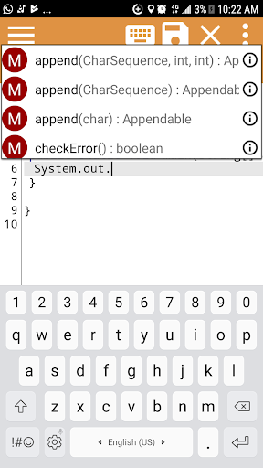 Java Editor is an editor for the java programming language. It supports auto completion, syntax highlighting, auto import and undo redo.