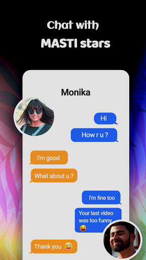 Masti App - это гарантированное лекарство от скуки; Смотреть забавные, вдохновляющие, хитрые видео, чтобы оставаться развлеченным. Узнайте видео и люди и общайтесь с ними, используя нашу функцию мгновенного мессенджера. Присоединяйтесь к нашему сообществу # Mastikhor's и заводите новых друзей. Сотрудитесь с другими создателями и создают видео Mast Duet.