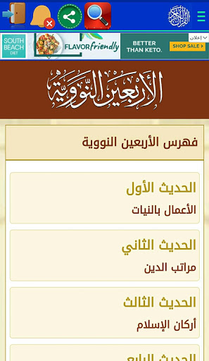 القرآن الكريم, إستماع, قراءة, تفسير لآيات القرآن الكريم, الأربعين النووية, تحويل التاريخ, إختبارات دينية وثقافية.