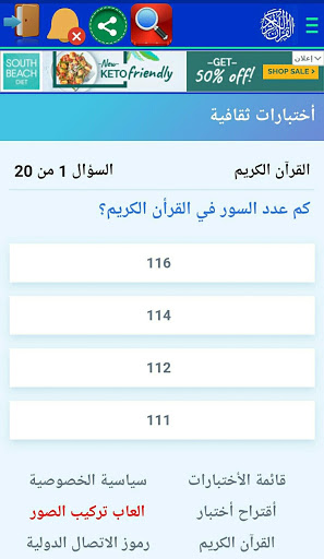 * يوجد خاصية بحث في التطبيق عن آية أو سورة أو تفسير للقرآن الكريم.