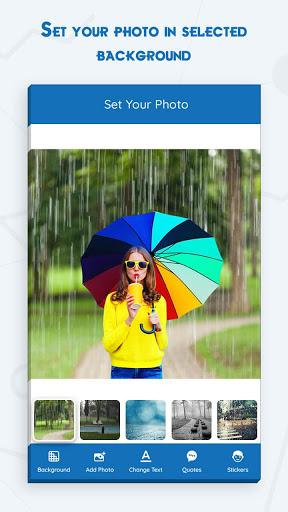 Edit your images by invoking the all-new and trendy rain droplets and monsoon effects provided by the Rain Photo Editor app.