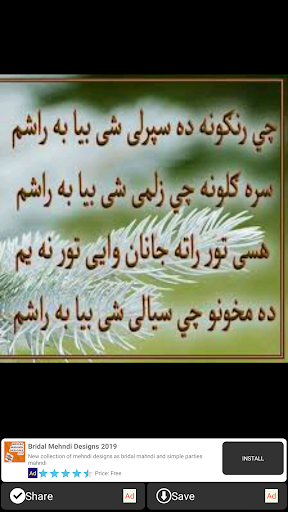 best and heart touching pashto poetry. pashto sherona , nazam ghazal collection . Pashto SMS and status collection. Rehman baba kalam and gul purna collection. Pashto tappay mahiya geet collection. Nadia iqbal shairi.