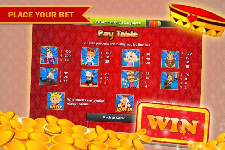 Опыт роялти и княжеская декаданс и сокровище. Опыт ... Royal King Слоты - Топ-Вегас Стиль Free Casino Slot Machine Bonanza! Побалуйте себя с помпой и гламура имперской удовольствия, как Белладжио и Атлантик-Сити у вас под рукой! Удачи в стиле!