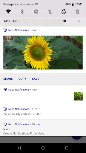 - вставьте текст или изображения, которые были скопированы из других приложений. Это может быть сделано в приложении или из постоянного уведомления - создание пользовательских текстовых уведомлений из приложения или постоянного уведомления
