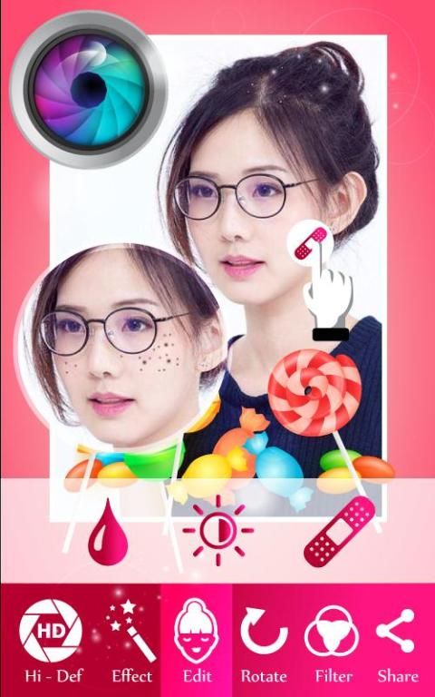Редактировать или использовать макияж наклейки, чтобы выглядеть красиво во всех ваших Селфи. Сладкие камера является основным инструментом красоты для селфи.