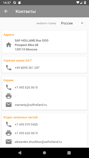 Кроме того, SAFH не несет ответственность за правильность, полноту и актуальность информации и данных, которые генерирует приложение, в той степени, в которой подобное исключение ответственности допускается в рамках закона. Ущерб, наносимый жизни, организму и здоровью, а также прочий ущерб, возникший в результате халатности или преднамеренного нарушения обязательств со стороны SAF-HOLLAND, не охватывается упомянутым выше исключением ответственности.