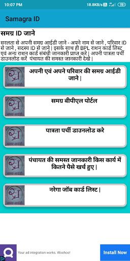 Это приложение предоставляет простой способ найти свой Samagra ID по имени. Найти SSSM ID на портале Самагра. С этим вы можете легко узнать список карт BPL Ration Card, приемность рациона, статус рационного карта.