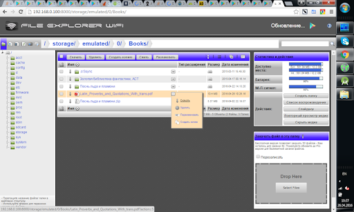 • удалять, переименовывать, копировать, запаковывать или распаковать файлы, используя веб интерфейс