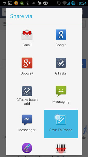 To use it, just tap the "Share", "Export", "Send" -or whatever it's called- button of any app and select Save To Phone to save all content behind the share function directly to your device!