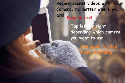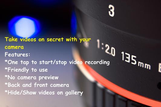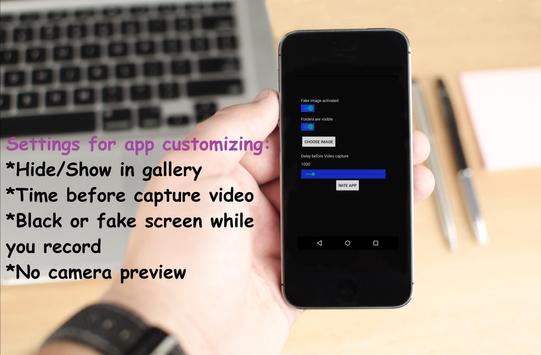 Secret Video Camera Photograph is a camera app or secret video recorder. take secret video recording with your front and back camera while you have a black screen or another image in screen (no screen preview).