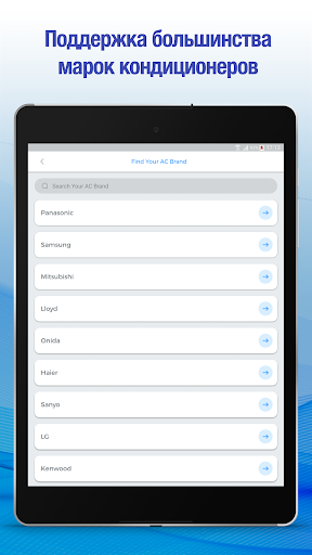 • Выберите кондиционер вашей марки из списка доступных и подключитесь к нему.