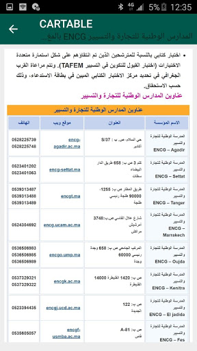 • Доступ к адресам Гранде Улучшенные школы в Марокко и за рубежом;