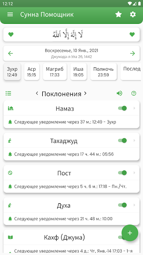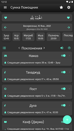 «Сунна Помощник» это инструмент настройки уведомлений для молитв, поста, ночных молитв, молитвы духа и других поклонений из сунны.