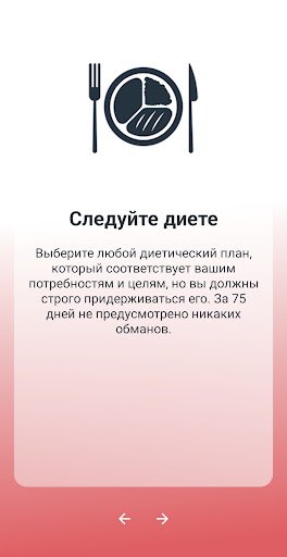 Настраиваемый план диеты: выберите любой план диеты, соответствующий вашим потребностям и целям, и строго придерживайтесь его на протяжении всего задания, запрещая чит-блюда.