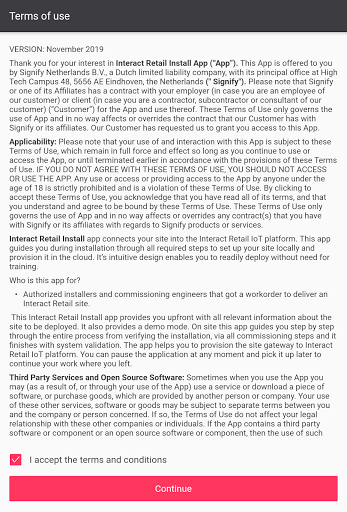 Interact Retail Install App подключает ваш сайт в платформу Interact Retail IoT.Это приложение направляет вас во время установки через все необходимые шаги, чтобы настроить ваш сайт локально и предоставить его в облаке.Это интуитивно понятный дизайн позволяет вам легко развернуться без необходимости обучения.