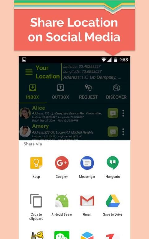 - Получатели получит ссылку Google Map вашего текущего местоположения.