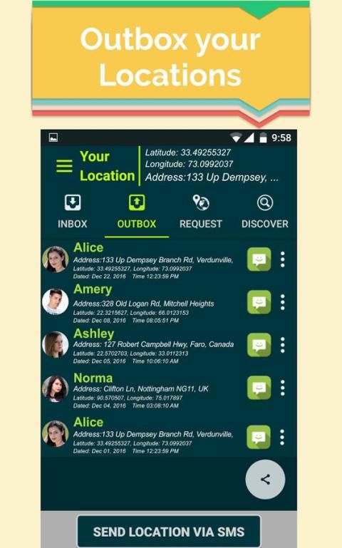 Геоданных: SMS Locator с мгновенными сообщениями делает вашу жизнь легко и бьющий в цифровом мире, делая его легко получить на связи с друзьями и семьей после того, как зная их местоположения. Это делает вашу семью и друзей в безопасности от потери и сделать легким для вас, чтобы добраться до семьи и друга местоположение.