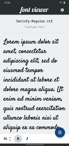 Viewer Font - это мощное приложение для предварительного просмотра TrueType (TTF) и OPEntype (OTF) в редактируемом текстовом поле.Это функции: