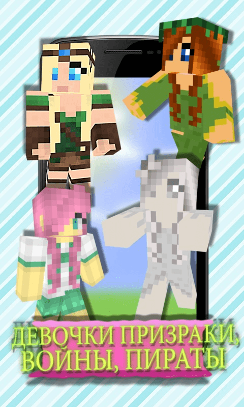 Множество скинов для девочек созданных в конце апреля 2016 Приложение Skins for Girls For Minecraft позволит Вам скачать скины для девочек для майнкрафт абсолютно бесплатно! Здесь вы найдете множество разных моделей! Более 100 новых костюмов для девочек! Принцессы, невесты, разбойницы, пираты, призраки, герои аниме и многие другие в одном месте! Удивите своих друзей новыми образами! Скины для девочек для майнкрафт ПЕ не оставят Вас равнодушными! Меняйте вид своих героинь хоть каждый день! Большое количество моделей порадует каждого игрока! Здесь хватит костюмов на всех!!! Создайте уникального персонажа и будьте сногсшибательными среди однообразных и серых игроков! Для работы скинов у Вас должен быть установлен BlockLauncher pro и полная версия игры. Требуется подключение к интернет. Это неофициальное приложение для Minecraft Pocket Edition. Это приложение не связано каким-либо образом с Mojang AB. Minecraft Имя, Minecraft Марка и Minecraft Активы все имущество Mojang AB или их уважительное владельца. Все права защищены. В соответствии с http://account.mojang.com/documents/brand_guidelines