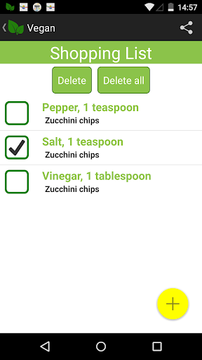 * Shopping list to write down all the ingredients to buy. The ingredients are taken automatically from recipes or inserting manually
