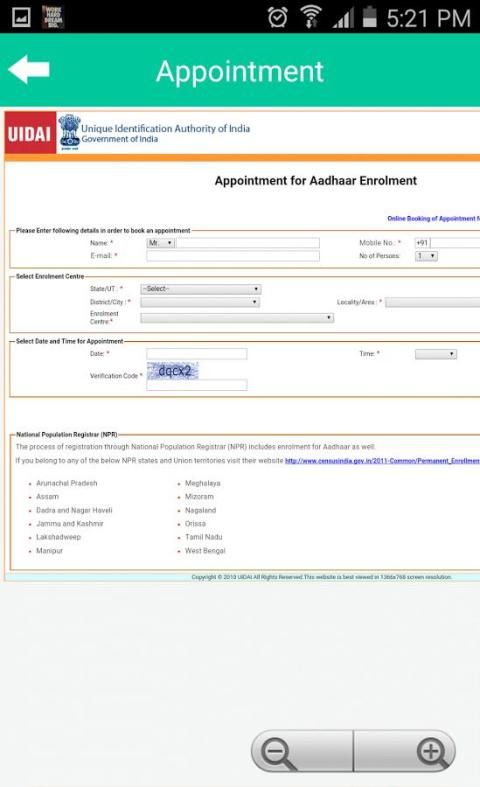 7. Записаться на прием для Aadhaar карты.