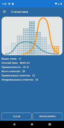 Вы можете посмотреть статистику, выбрав пункт меню в главном меню. Информация включает в себя общий балл, правильность, количество правильных и неправильных ответов.