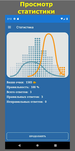 Вы можете посмотреть статистику, выбрав пункт меню в главном меню. Информация состоит из общего балла, точности, количества правильных и неправильных ответов.