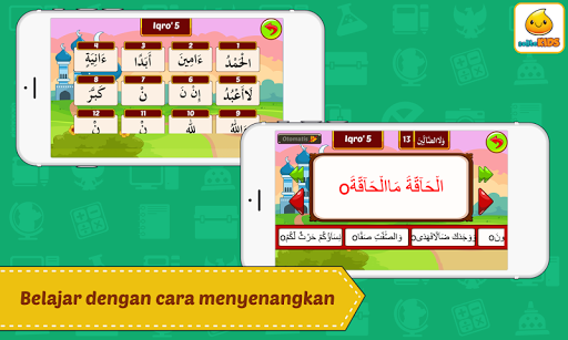 Dalam aplikasi ini anak-anak akan belajar membaca al-Quran yang betul menggunakan kaedah iqro '. Konsep pembelajaran dalam aplikasi ini dirancang secara interaktif dengan permainan yang menarik dan bunyi yang menarik agar anak-anak tidak bosan semasa belajar membaca Al-Quran