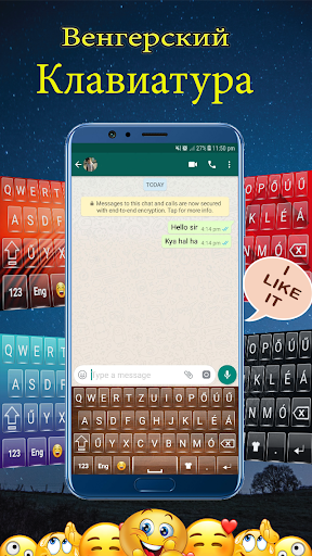 Венгерская клавиатура включает в себя более 500 самых популярных смайликов. Вы можете выбрать смайлики из списка клавиатуры. Общение с друзьями и выразить свои чувства с различными смайликами. Венгерская раскладка лучше венгерский набрав приложение для всех. Венгерский язык клавиатура является бесплатной для всех.