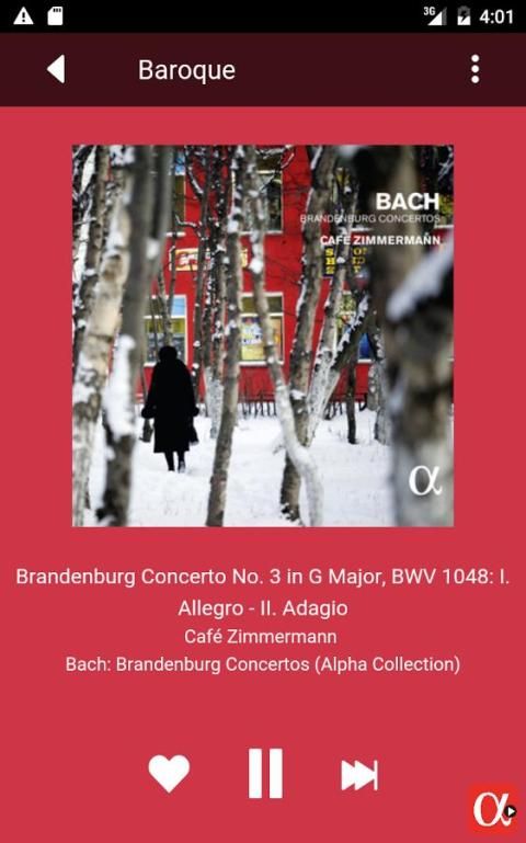 Это приложение имеет несколько невероятных классической музыки плейлисты отсортированы по жанрам, настроений и действий. Альфа Играть предлагает Вам Куратор содержание адаптированный к вашему уровню знаний о классической музыке, чтобы удовлетворить ценителей и удивить новичков.