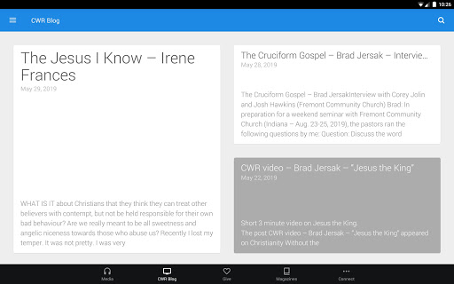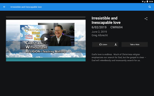 У вас будет доступ к ежедневной и еженедельному аудиои видео сообщения Грега Альбрехта.Кроме того, доступ к христианству без журнала религии и нашего видео журнала CWR.Наш еженедельный опрос библей и блог также имеется.