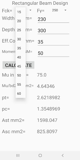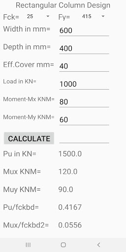 Design Aids to IS-456-1978 is published by BIS as special publication SP-16 in 1983.Most of Civil Engineers use the tables and charts in that publication for design of beams and columns. Since it was published in 1983, the limitation of materials concrete is M25 and Steel Fe500. Now the concrete technology developed a lot and Euro code starts with Concrete M30 to M60 and Steel Fe500 to Fe550. This app includes both Euro standard and Indian standard with Concrete M15 to M60 and Steel Fe250 to Fe550. The usage is very simple just replace the existing values in the app with your real design values and click on Calculate button to get results of your design. If the section is not sufficient you will be prompted that size is not enough.
