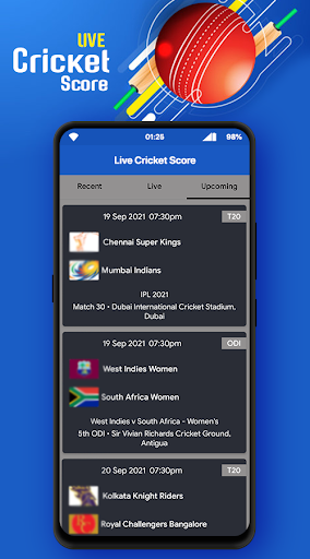 Получить ближние крикет для всех предстоящих матчей, международный крикет, и T20 Leagues: