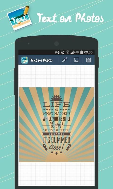 Замечательный простое приложение для добавления текста к изображениям для создания интересных изображений. Текст на фотографиях поможет вам добавить смысл текста со многими фото шрифта красиво и может изменить размер, цвет и забавные эффекты к картинке.