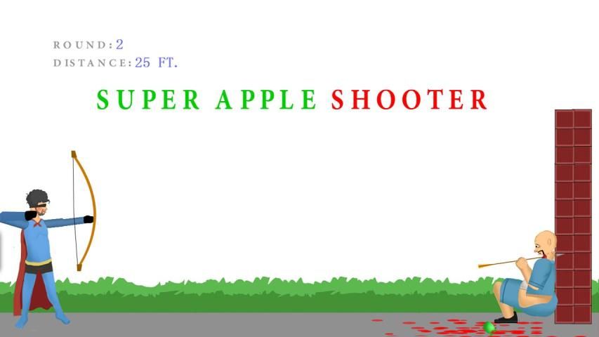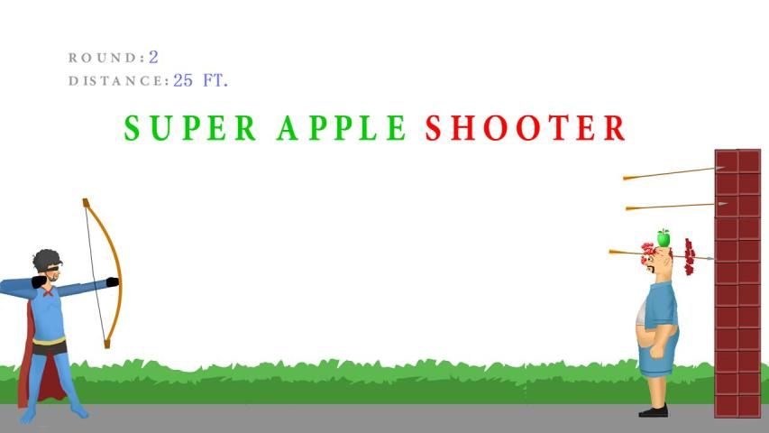 This is an interesting shooting game. Shoot the green apple, don't shoot your assistant. That's too dangerous!
