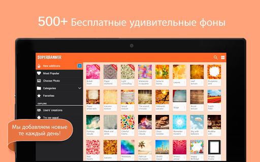 SuperBanner позволяет вам создавать красивые сообщения. Выбирайте среди классных фонов и добавляйте ваше сообщение, выбрав цвет и шрифт. Вы будете в восторге! В ПОЛНУЮ версию входят: * Множество красивых фонов * 100 супер-шрифтов * никакой рекламы