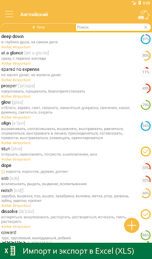 Приложение «Мой словарь: полиглот» дает уникальную возможность заучивать одновременно несколько слов в день и это самый быстрый способ в изучении английского языка (а так же испанского, немецкого, французского и т.д.), потому что увеличение словарного запаса это основа быстрого изучения. Особенно ощутимо при подготовке к TOEFL, IELTS, ESP, FCE, PET или TOEIC, где нужно изучать новые слова максимально быстро.