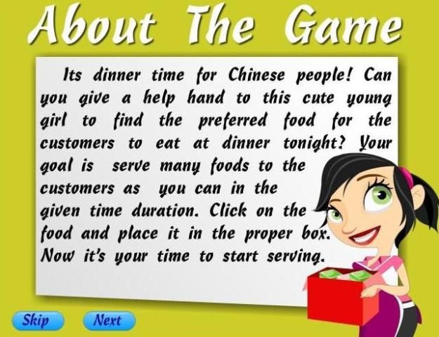 You started a small chat food shop in a city. Lots of customers started coming to your shop. Now you have to serve the customers. Give the customers their desired food, do not make them wait for long time, waiting time will be indicated, serve them before that or they will leave the shop. The number of food items will increase in the subsequent levels, and limit will also increase. Good Luck!