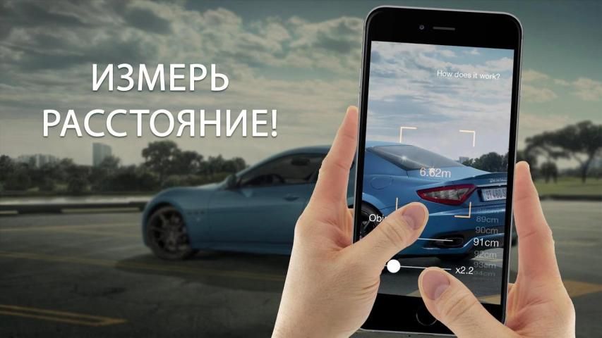 Как использовать: Наведите камеру на интересующий вас объект и настройте кадр таким образом, чтобы верхняя и нижняя границы совпадали с высотой объекта. Результат вы увидите в середине кадра.