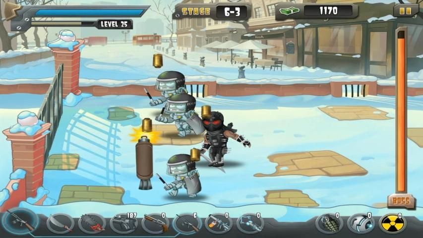 - Сделать использование нескольких видов оружия, которые помогут вам убить зомби, нажмите на специальное оружие атомной бомбы, чтобы сделать массивный разрушающую ущерб.