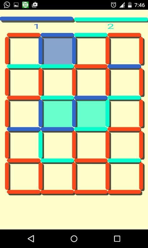 1) Нажмите на строку, чтобы пометить его (вертикальная или горизонтальная) .Your цель состоит в том, чтобы завершить четыре боковой ящик.