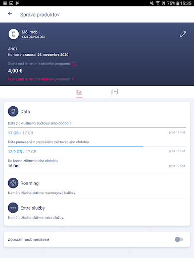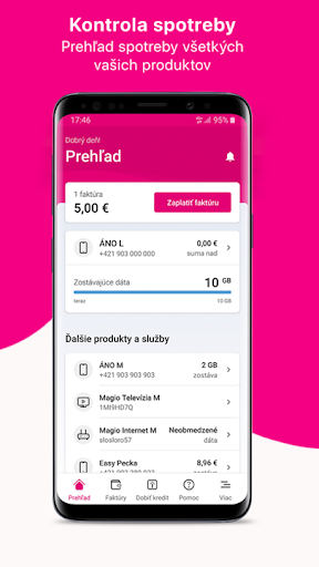 Telekom Application позволяет легко и удобно управлять продуктами от Telekom.Для номеров мобильных телефонов вы увидите, сколько данных, минут и SMS вы все равно можете использовать в этом месяце.Вы можете купить пакеты данных для использования дома и бродить.Вы также можете добавить фиксированные сетевые продукты (Magio Internet, Magio TV, стационарная линия) или другие номера телефонов, чтобы иметь все ваши продукты, близкие и так далее.Благодаря возможности сохранить вашу карту, оплата счетов очень быстро.