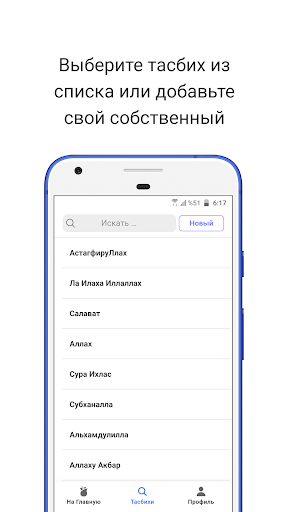 - Выберите тасбих из готового списка или добавьте свой собственный 🤓
